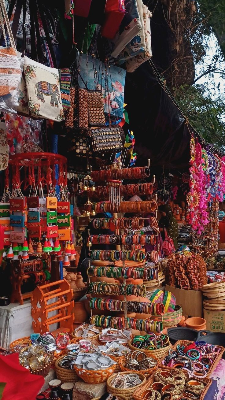 – Bandhani & block-printed fabrics – Mojaris & handicrafts – Affordable souvenirs – Vibrant street shopping vibe